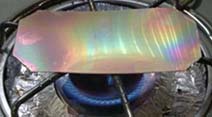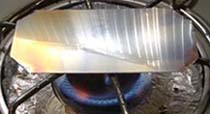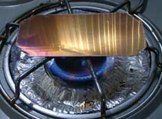 ⇒ ⇒![]() コンロの上で熱して柔らかくする。(金属は、熱を入れると曲がりやすくなる。) |