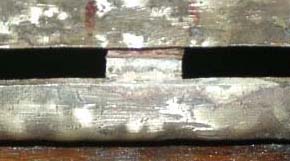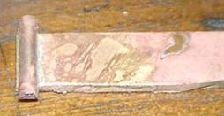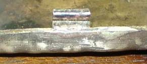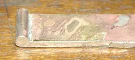 ![]() ![]() フタがカチッと閉まるように、留金のパーツを作る。 真鍮の丸棒を断面が半円になるように削り、真鍮の板にロー付けする。 ヤスリで削って形を整える。 |