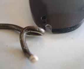 丸棒をヤットコ(ペンチ)で曲げて レンズをつなげるパーツの形を作る。 |