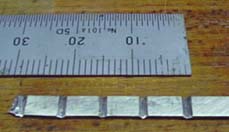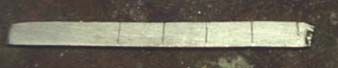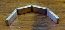 ← 印にそって糸ノコで溝を作り さらにヤスリの角を使って 90°の溝を等間隔に彫る |