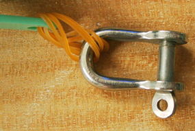 身近なもので、単価が安いもの、ということで、輪ゴムを2つ使った。