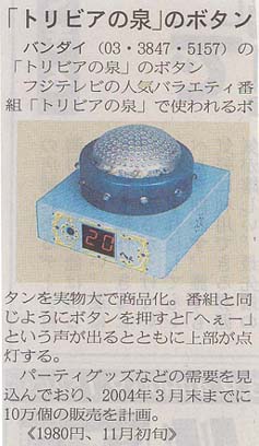 何日の朝刊だったか?、「トリビアの泉」 ボタンなる商品をタイムリーに発見♪