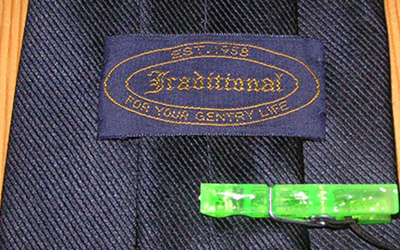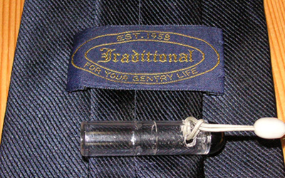 その他、身につけている金属製品は、自作のネクタイピンとベルトのバックルだ。