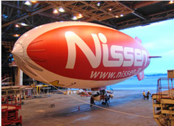 普通は飛行船の宣伝は地上から見上げるものだけど、