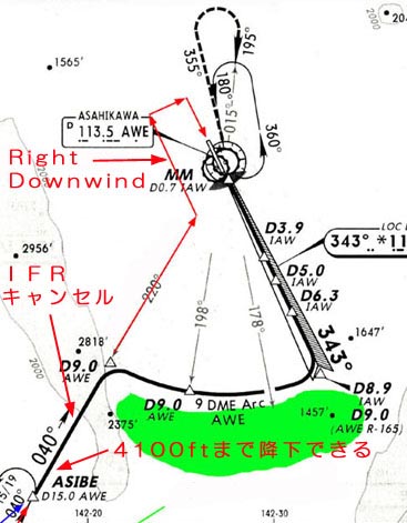 もしかすると、ASHIBE 過ぎて、VOR DME LOC34 approach に従って 4100ft まで降下中に雲の下に出れて、
