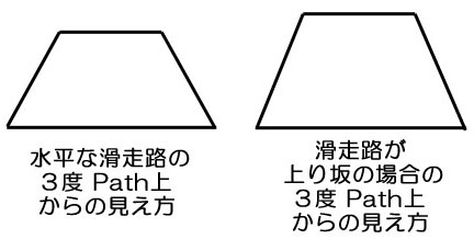 飛行機から見える滑走路に対する角度は3.43度になるので、台形の形が変わってくる。
