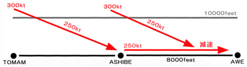 MCP ALT を 4100 に巻き下げ、ASHIBE 通過後、すぐに LVL CHG Push。