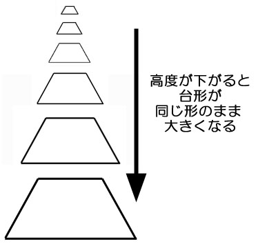 台形が相似形をキープしつつ大きくなるように Path を維持しながら滑走路に近づいていく。