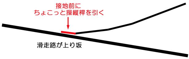 だから、いつもより大きめに機首を上げ、接地時に微妙に上昇するイメージでなくてはならない。