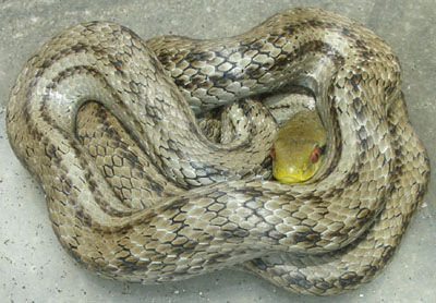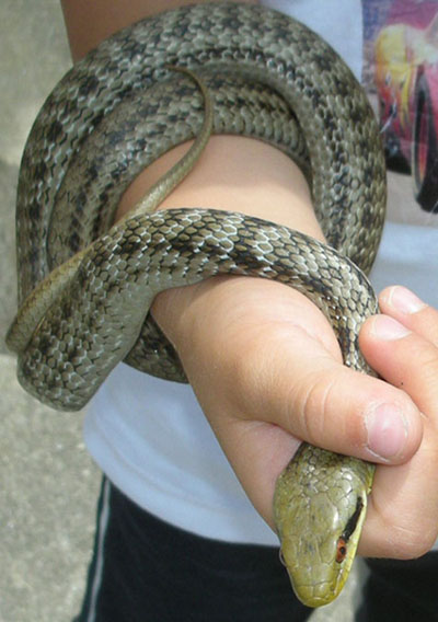以前、息子と捕ったシマヘビはまだ小さかった。
