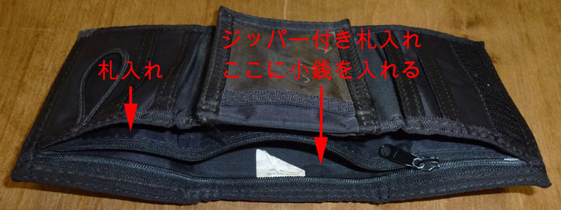 札入れが二箇所あり、一方にはジッパーがついてるっ!