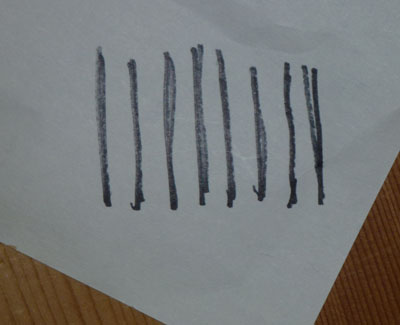 「トモ、見て、これ。 これが 『シマ』 だよ。 分かる? 線がいっぱいはいってるでしょ?」