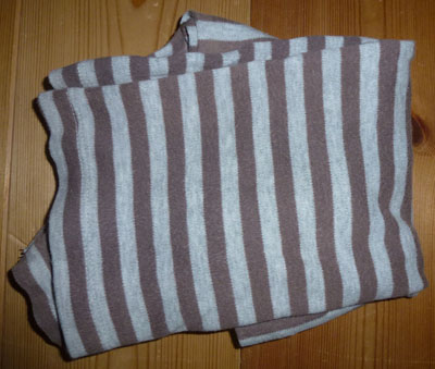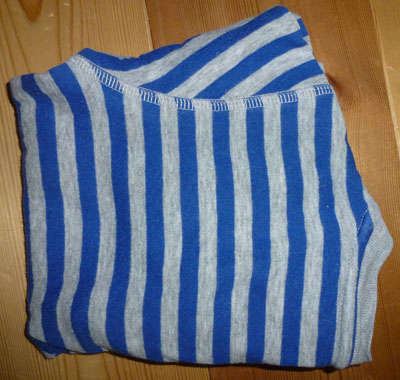 すると、妻が立ち上がり、引き出しからトモのシマ模様の長Tを出した。
