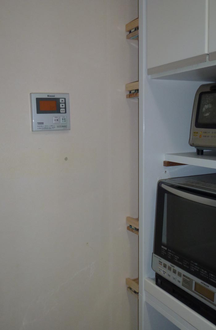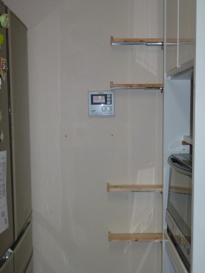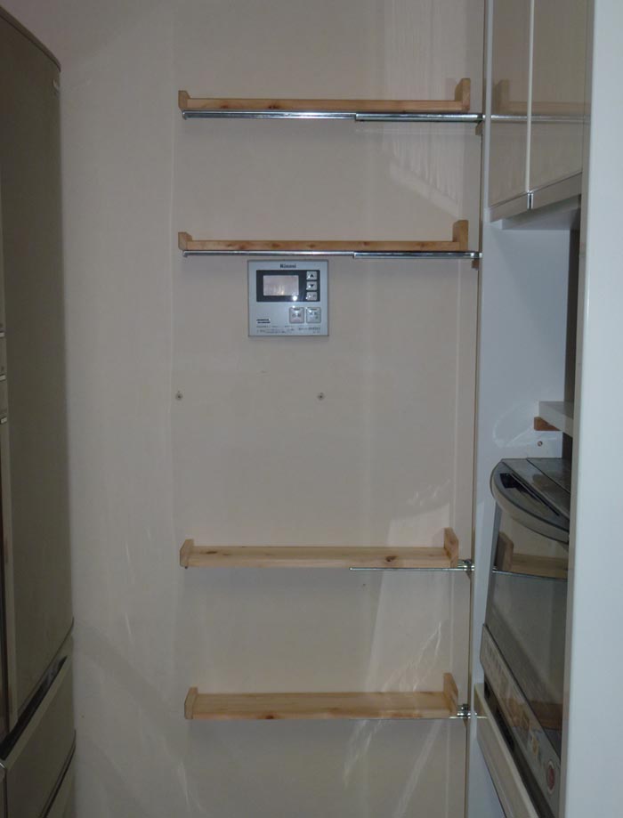 冷蔵庫とレンジボードの間の壁に棚をつけたいが、