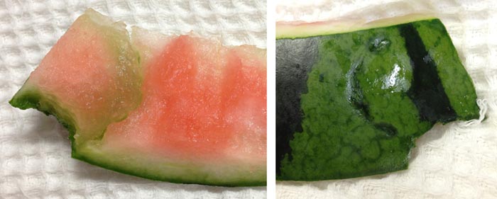 トモが食べ残したスイカの皮を見て、ニンマリ。