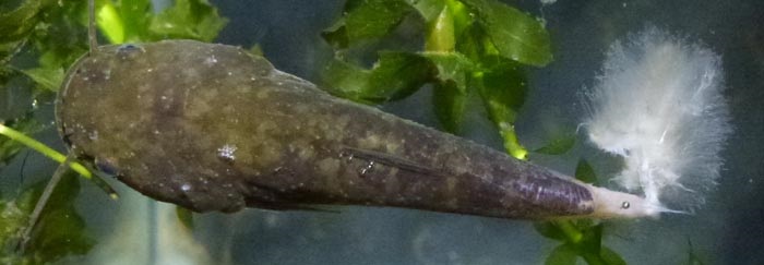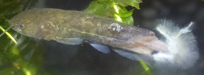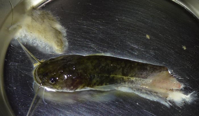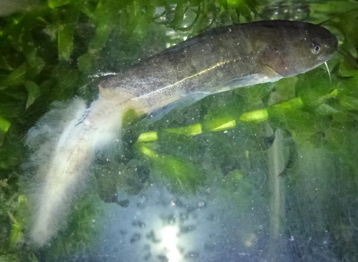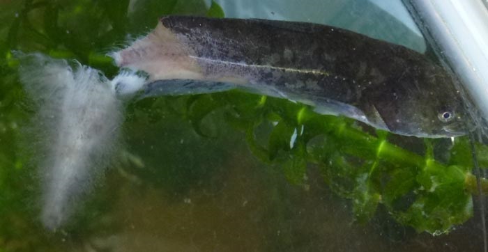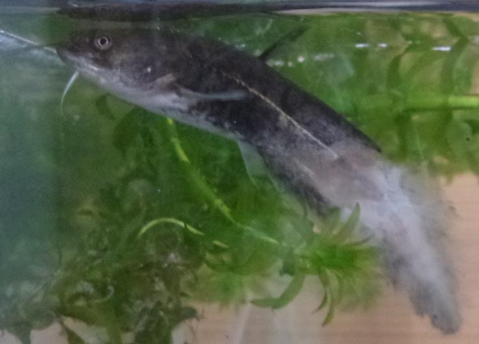 その隣に、同じ場所で採ってきたナマズの子、4匹がいる。