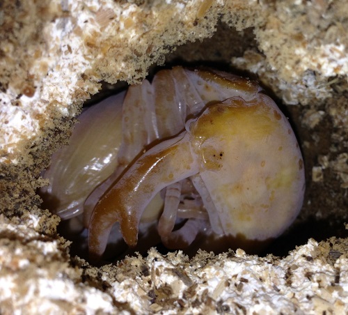 1匹はだいぶ前に羽化し(♀ 43mm)、もう1匹はオスで蛹を確認していた。