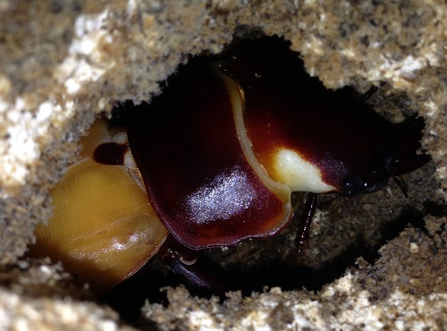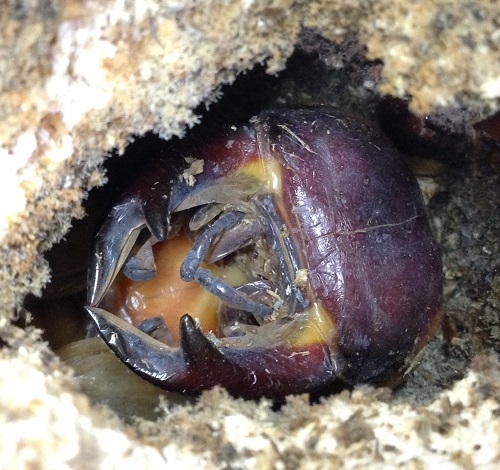 その蛹、顎から頭にかけて昨晩、紫色に変色しているのを発見した。