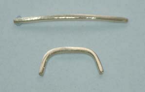 角棒を曲げ、ヤスリで形を整へ、ガラスの枠を接続するパーツを作る