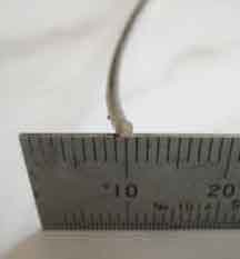 | 一辺 6mm の18金の角棒を ローラーで引き伸ばしていく。 左写真は 4mm 左斜め下の写真は 3mm 下の写真は 1.7mm まで伸ばしたところ |