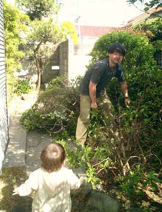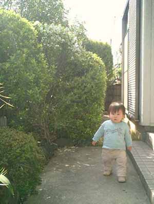 そんなわけで、かろうじて庭の雰囲気が分かる妻が取った写真を使うこととなり、シンちゃん、初登場。