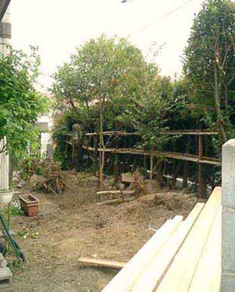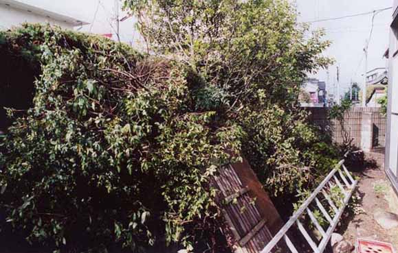 前の持ち主の庭は、端から端まで、家の外壁ギリギリまで高さ1.5m程の植木が植わっており、
