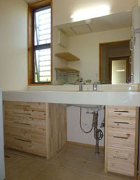床をタル張りに、洗面は人工大理石のカウンター(INAX製)にしました。